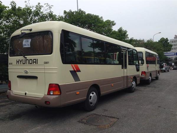 Xe County 3 cục (Đồng Vàng chính hãng): Điều hòa 1 máy nén công suất cao theo đúng nguyên bản chuyển giao của Hyundai Hàn Quốc, hệ thống âm thanh màn hình DVD với 06 loa công suất lớn + Ampli/ Micro, sấy kính chắn gió và thổi gió táplo, sấy sàn, kính hành khách loại kéo được, lốp dự phòng, kích xe, bộ đồ ghề sửa chữa tiêu chuẩn…